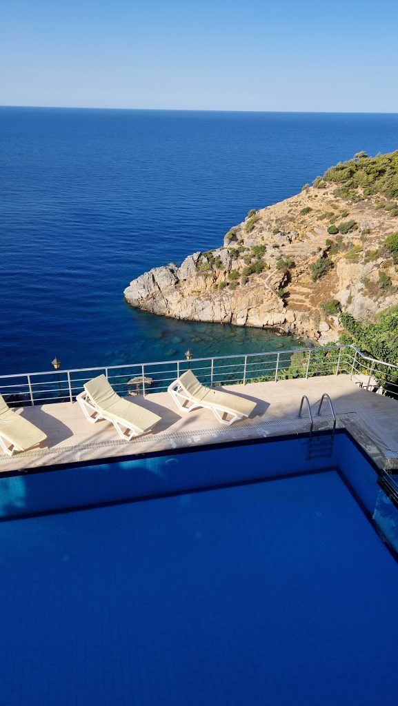 ilosi ensimmäinen kokemuksellinen hyvinvointimatka Turkissa oli 21.-26.9.2025 kahdeksan asiakkaan ja Ilonan seikkailuna Gazipasan alueella ja ympäröivässä luonnossa upeiden nähtävyyksien äärellä. Ilona vuokrasi lentoasemalta tila-auton ja ajaminen Turkin liikenteessä sujui yhtä vaivattomasti kuin kapeilla ja jyrkillä vuoristoteilläkin. Majoituimme Blue Lagoon Villagessa, joka on upealla sijainnilla korkealla rinteellä meren reunalla. Villojen yhteydessä oli sopiva patio aamujen kehomieliharjoitusten tekemiseen merinäköalalla. Meillä oli käytössämme kaksi villaa, joissa majoituttiin kahden hengen huoneissa.